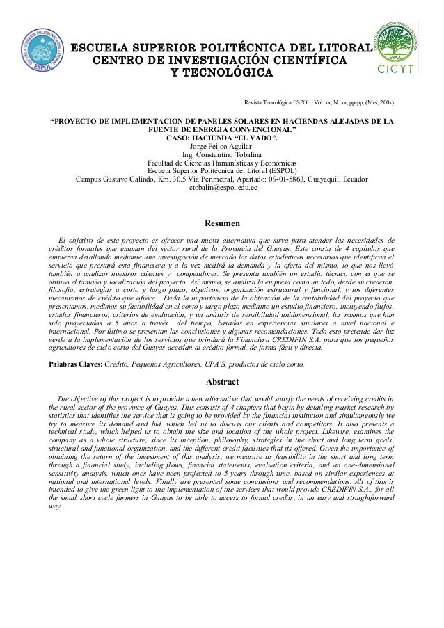 Proyecto de paneles solares en hacienda. Nvx solar es una empresa líder en proyectos de eficiencia energética comprometida con el medio ambiente y dedicados a promover las energías limpias instalando paneles solares en querétaro. Centro de investigacin cientfica y tecnolgica revista tecnolgica espol vol. Escuela superior politcnica del litoral. Por lo tanto y con fundamento en el artículo 8 inciso f de la ley n 7092 de repetida cita.